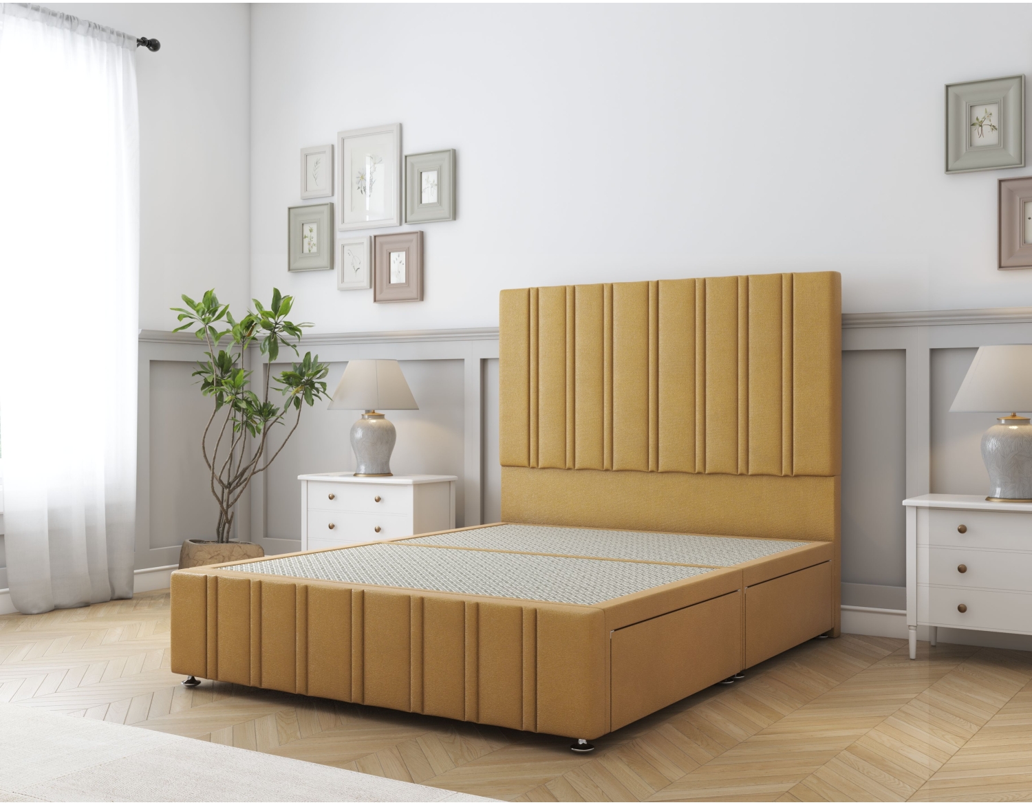 Designed with elegant fluted panels that create a sense of texture and refined sophistication. our 26 inch strutted headboard is included as standard with the Langston Divan Bed. However if you want to opt for an even grander look, Our 54 inch floor standing headboard offers an even more striking look, improved comfort and enhanced support too.