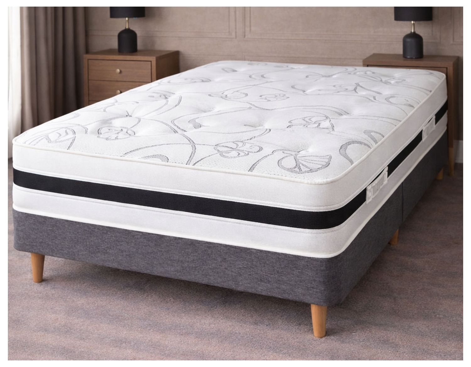 The Mayfair mattress features a superior open coil spring unit made from a single wire coiled into a helical shape. Open coil mattresses are known for their affordability, durability, and ability to provide a medium-firm level of support. They also tend to be lighter and easier to manoeuvre than other mattresses.