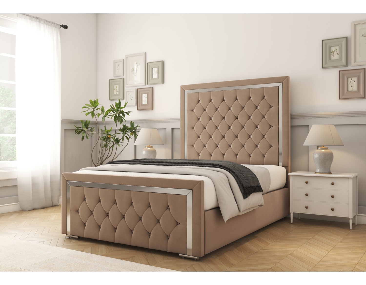 Tailor your Sofia Chrome Bed Frame to suit your style with a variety of luxurious fabric choices: